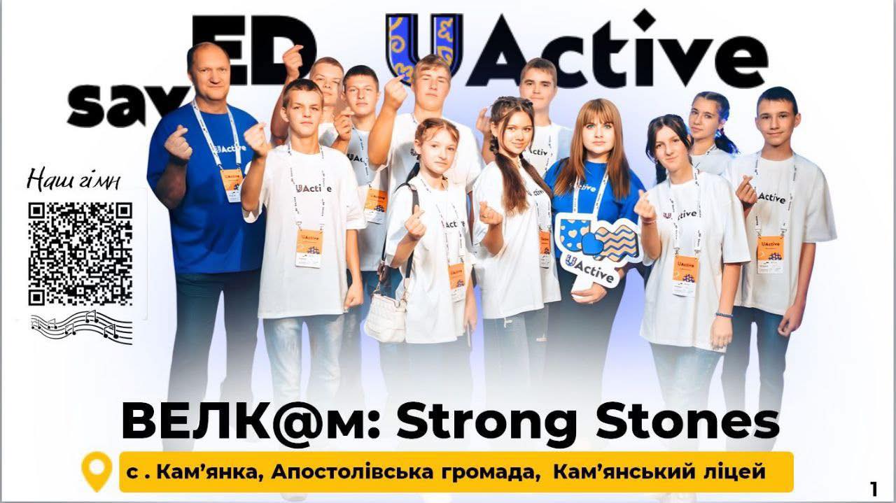 Команда ВеЛКaМ: Strong Stones Кам’янського ліцею представляє нашу громаду і попереду у них відповідальний виступ та захист їх проекту. Наші учні розробили проект із створення універсального спортивно-дозвіллєвого простору на базі ліцею і тепер поборяться за можливість його реалізувати.
