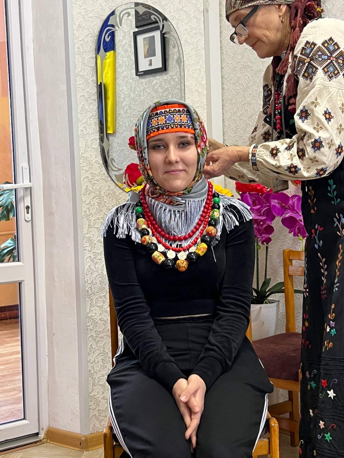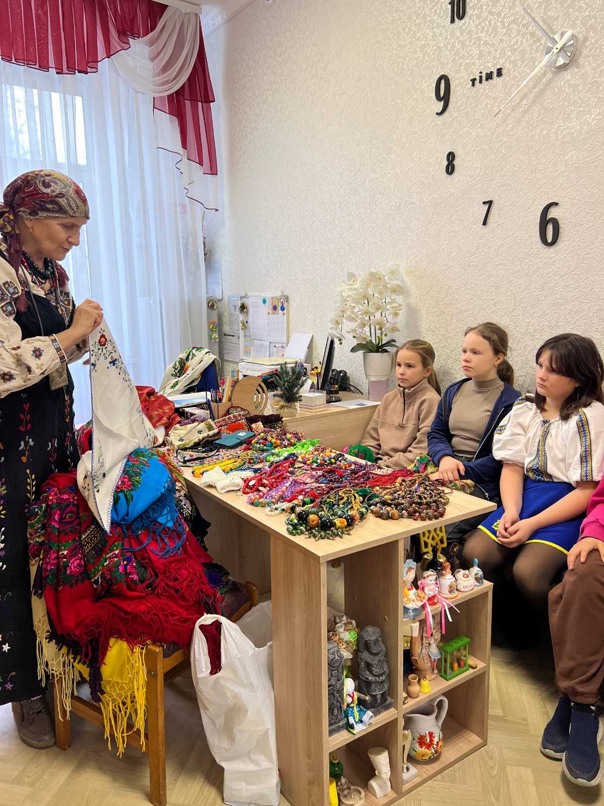 Із захопленням слухали дівчатка цікаву розповідь майстрині про обрядовість, пов’язану з хусткою. Познайомилися з багатьма традиційними техніками зав’язування хустки у різних регіонах Країни.