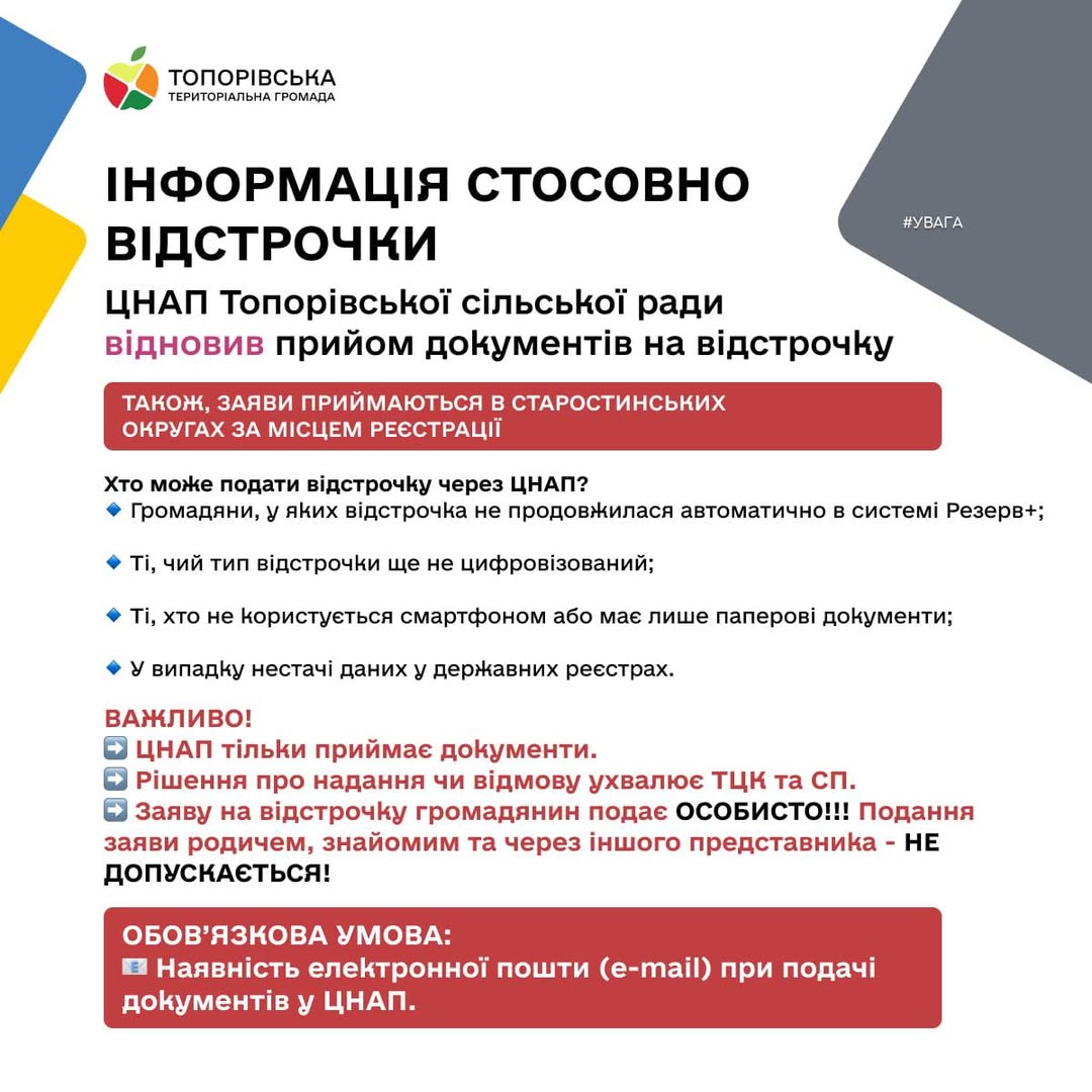 ЦНАП Топорівської сільської ради відновив прийом документів на відстрочку
