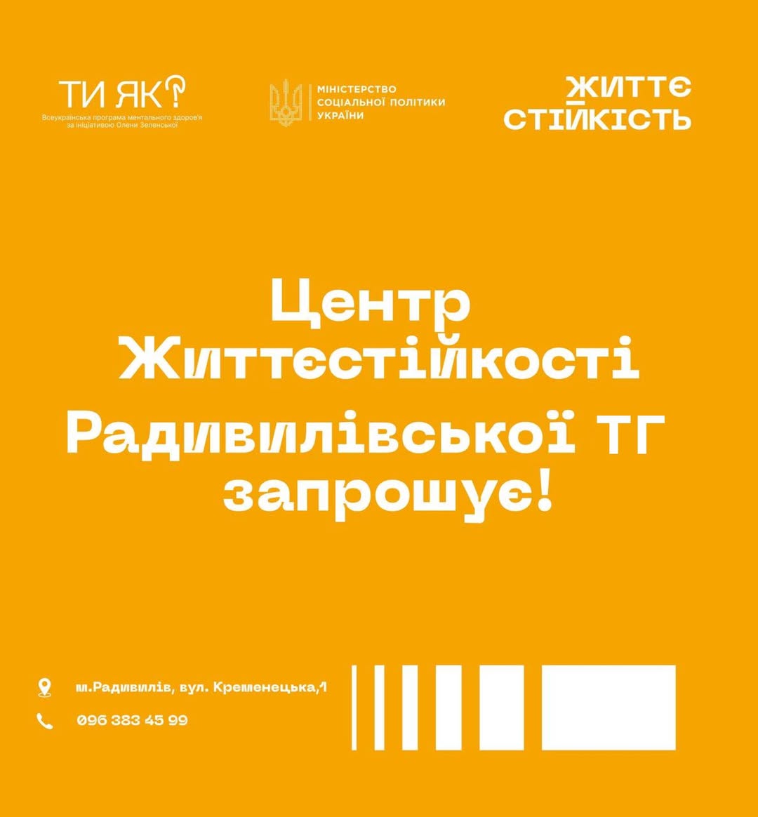 Центр життєстійкості Радивилівської ТГ запрошує дітей та дорослих на групові заходи та індивідуальні консультації