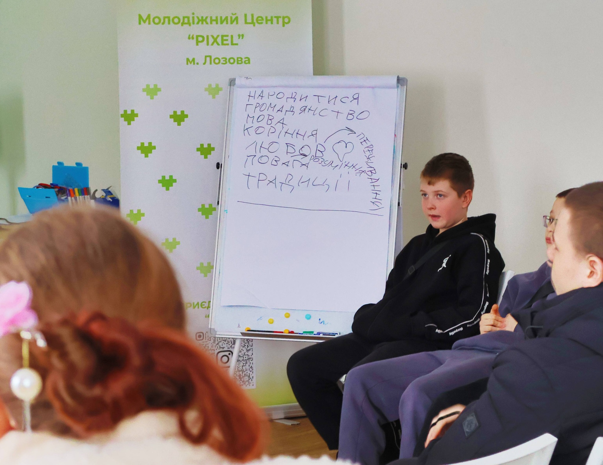 Разом із гостем молодь поринула в події 1919 року, детально розібравши значення Акта Злуки. Особливий відгук у серцях викликали факти про героїчну боротьбу за незалежність саме на теренах Лозівщини під час Української революції 1917-1921 років.