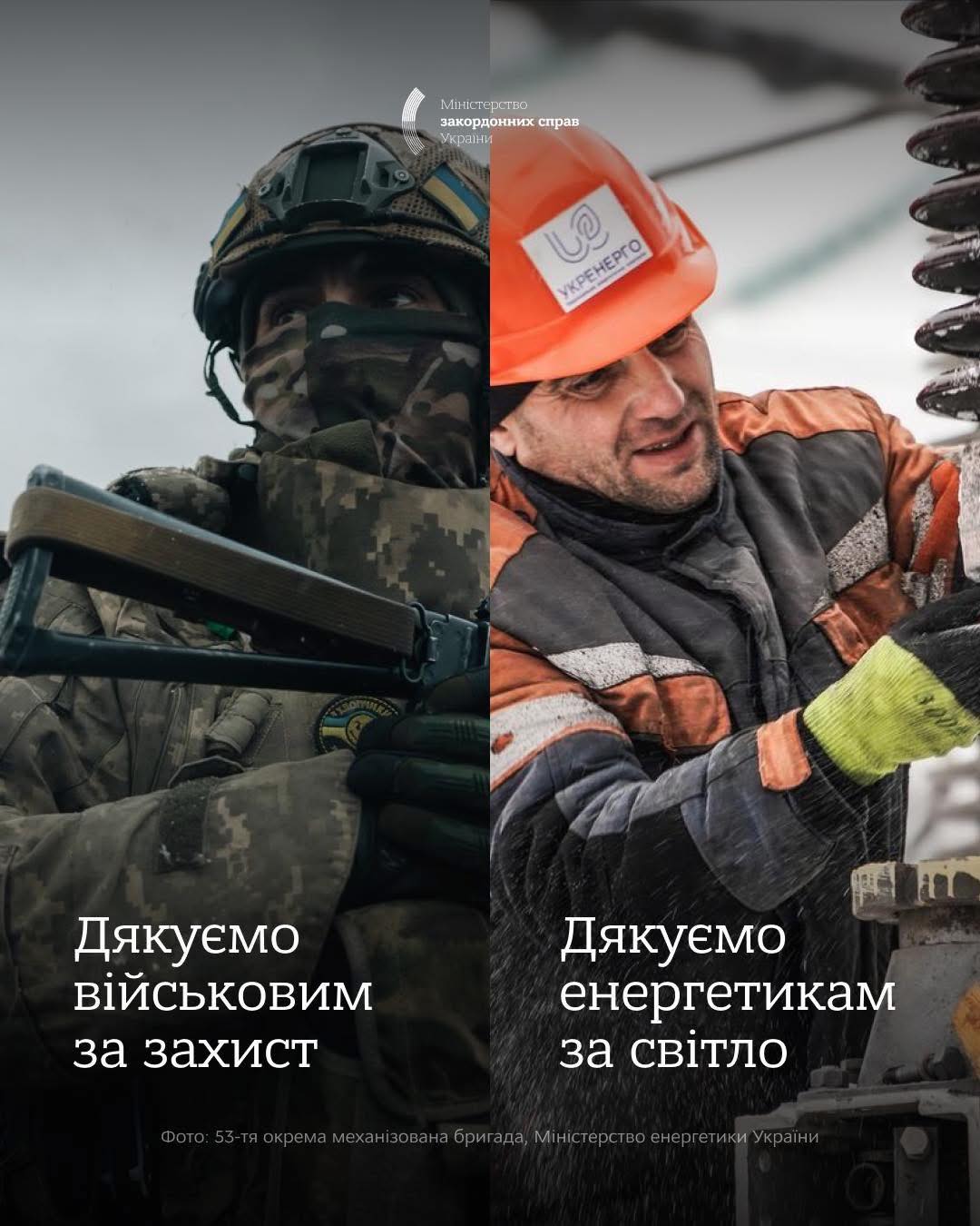 Дякуємо українським захисникам і захисницям за те, що стоять на захисті наших міст, наших домівок і нашого майбутнього! Дякуємо енергетикам, які працюють вдень і вночі, щоб забезпечувати наші оселі світлом і теплом!