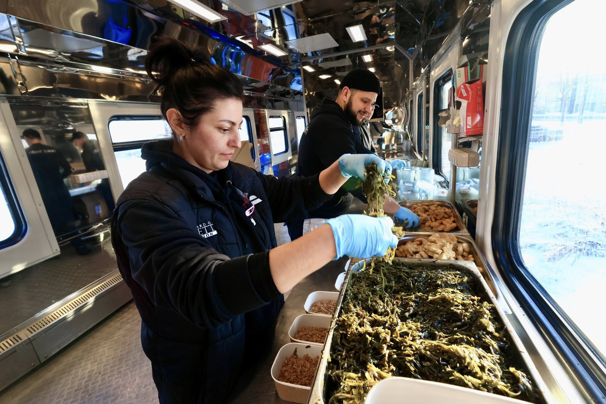 Поїзд-кухня — це повністю автономне рішення з потужністю до 10 тисяч порцій на добу. Повноцінне меню включає перші та основні страви, салати, фрукти. Поїзд готує та передає їжу, а громади забезпечують логістику й доставку кінцевим отримувачам.