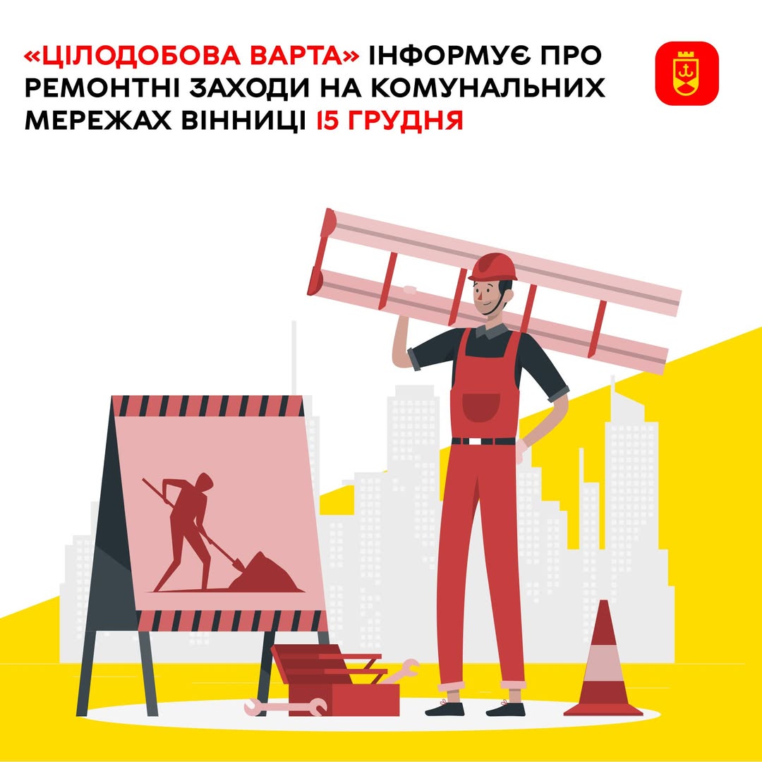 Цілодобова варта інформує про ремонтні заходи на комунальних мережах Вінниці 15 грудня