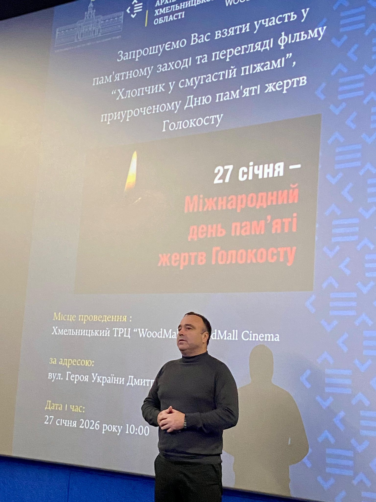 ✅У Міжнародний день пам’яті жертв Голокосту в місті Хмельницький відбулися пам’ятні заходи та перегляд художнього фільму «Хлопчик у смугастій піжамі». Захід організований Хмельницькою обласною військовою адміністрацією спільно з Державним архівом Хмельницької області.