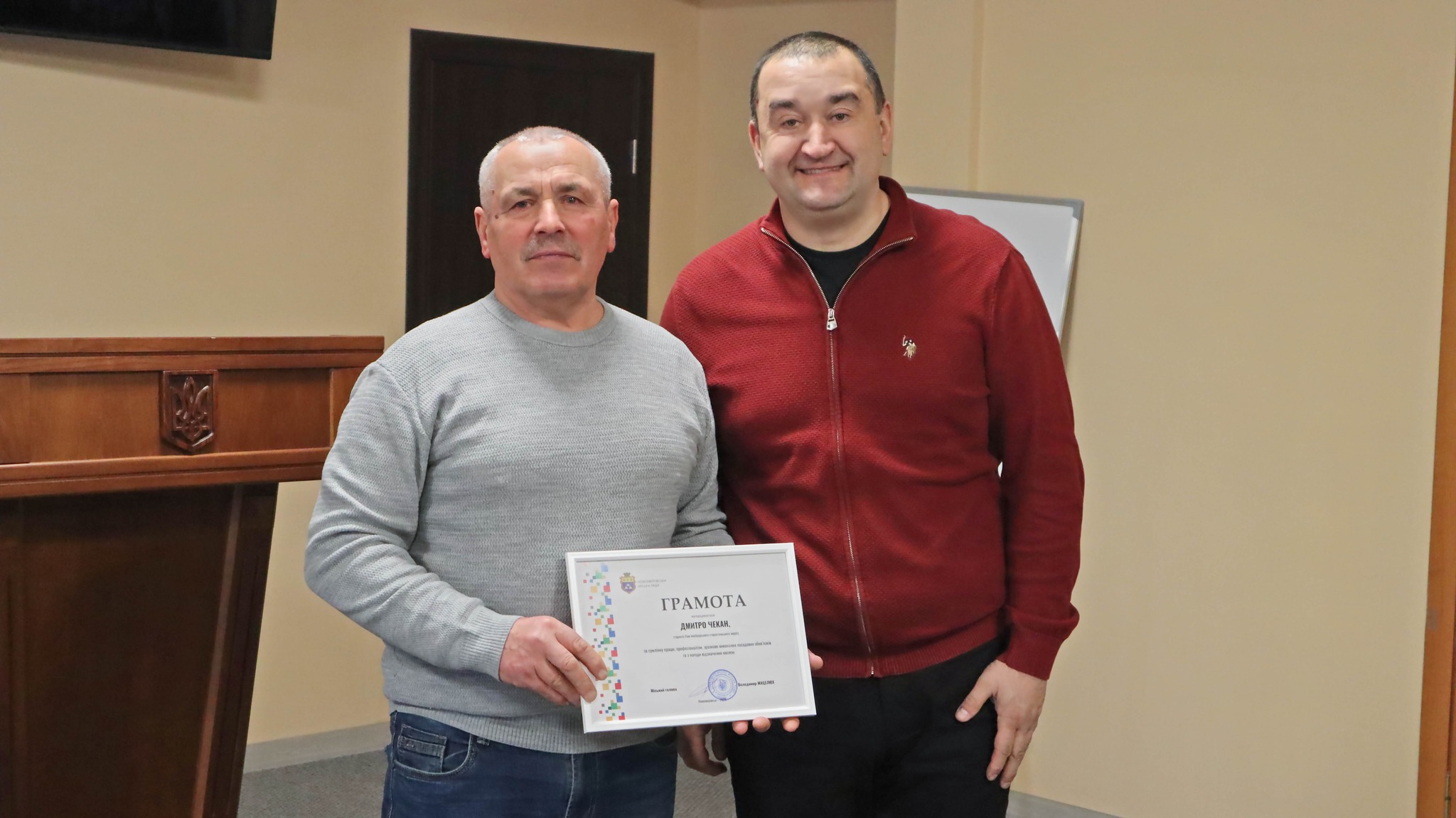 У ході засідання міський голова висловив вітальні слова з нагоди ювілею старості Кам’янобрідського старостинського округу Дмитру Чекану та відзначив ювіляра почесною грамотою.
