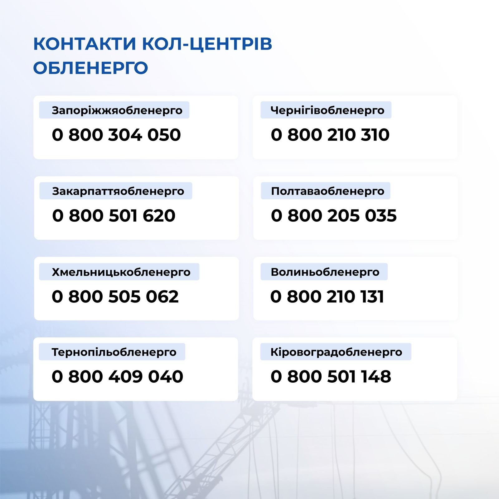 📌 Також для загальних запитань щодо енергетики та роботи системи електропостачання можна звертатися до Міненерго за номерами: 0-800-507-052, 044-594-65-45.
