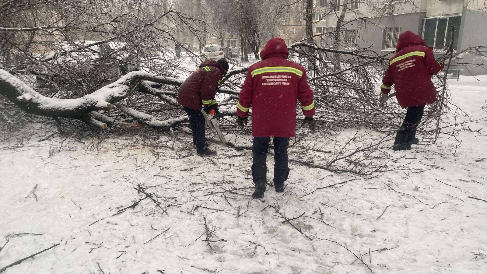Через ожеледицю та льодовий покрив на деревах, магістралях і міжквартальних проїздах сьогодні в районі зафіксовано 37 повалених дерев. Продовжується снігопад, що ускладнює рух і створює додаткові перешкоди для транспорту та пішоходів.