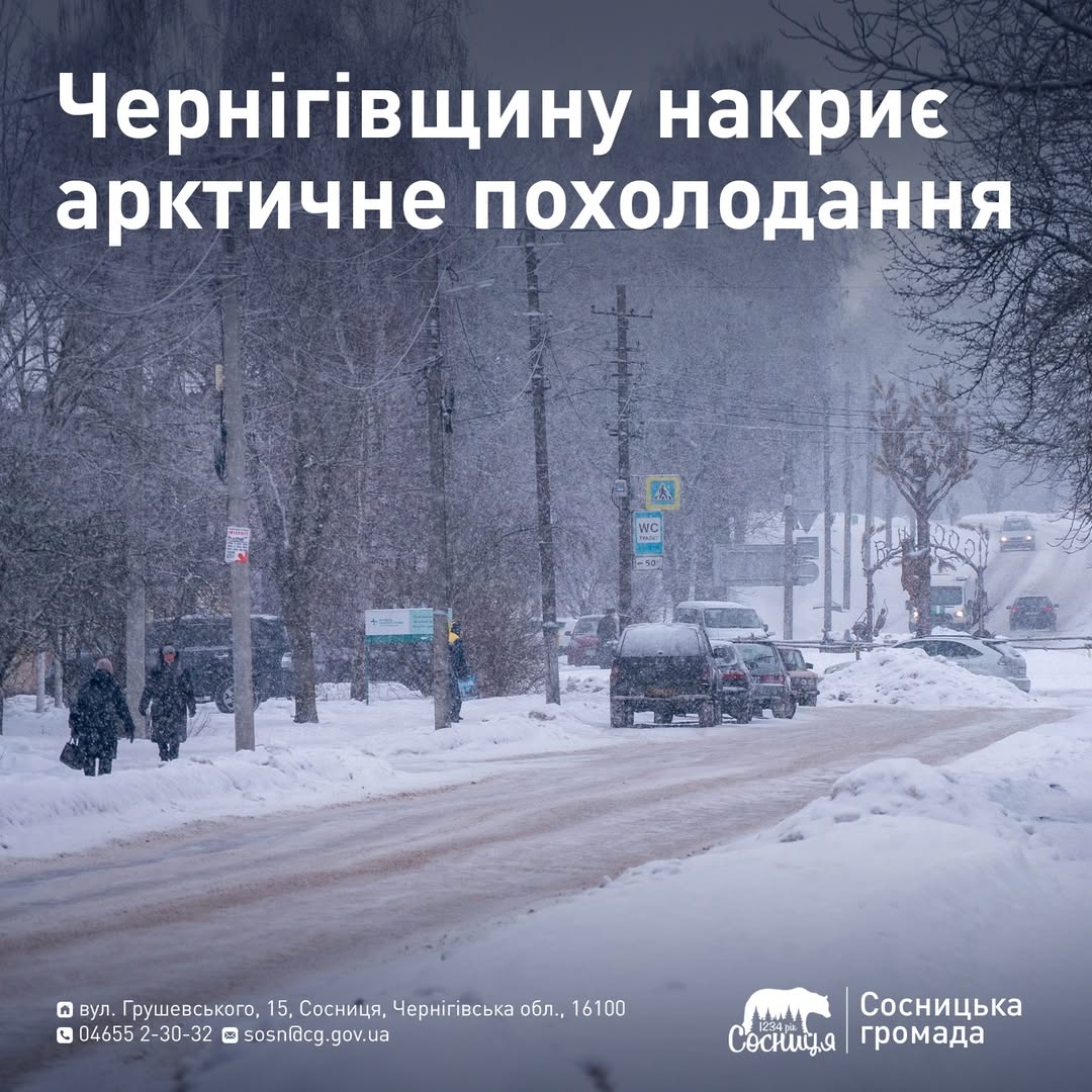 За інформацією Чернігівський обласний центр з гідрометеорології з 30 січня очікується зниження температури через арктичну повітряну масу з півночі. Температура вдень знизиться до -9…-14°C морозу.