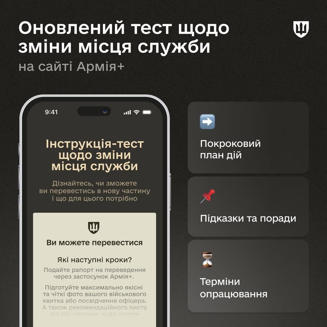 📌 Чи можу перевестись в іншу частину? В Армія+ оновили інструкцію-тест