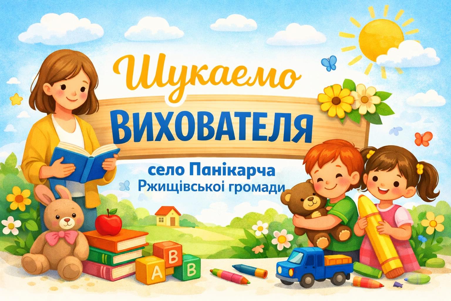 👶 ШУКАЄМО ВИХОВАТЕЛЯ ДО ДИТЯЧОГО САДОЧКА В СЕЛІ ПАНІКАРЧА РЖИЩІВСЬКОЇ ГРОМАДИ