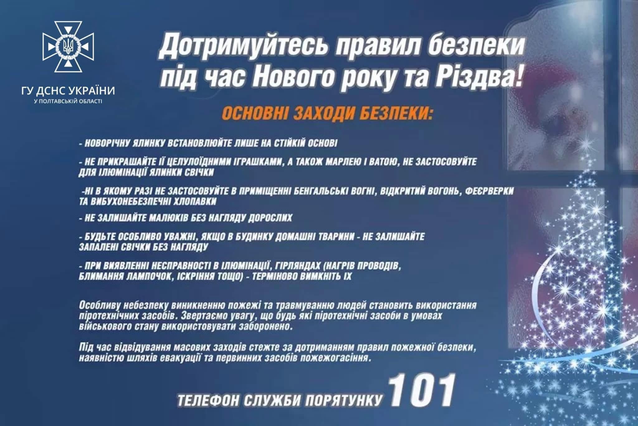 Звертаємо Вашу увагу на дотриманні правил безпеки під час святкування Новорічних та Різдвяних свят ⛄️🎄