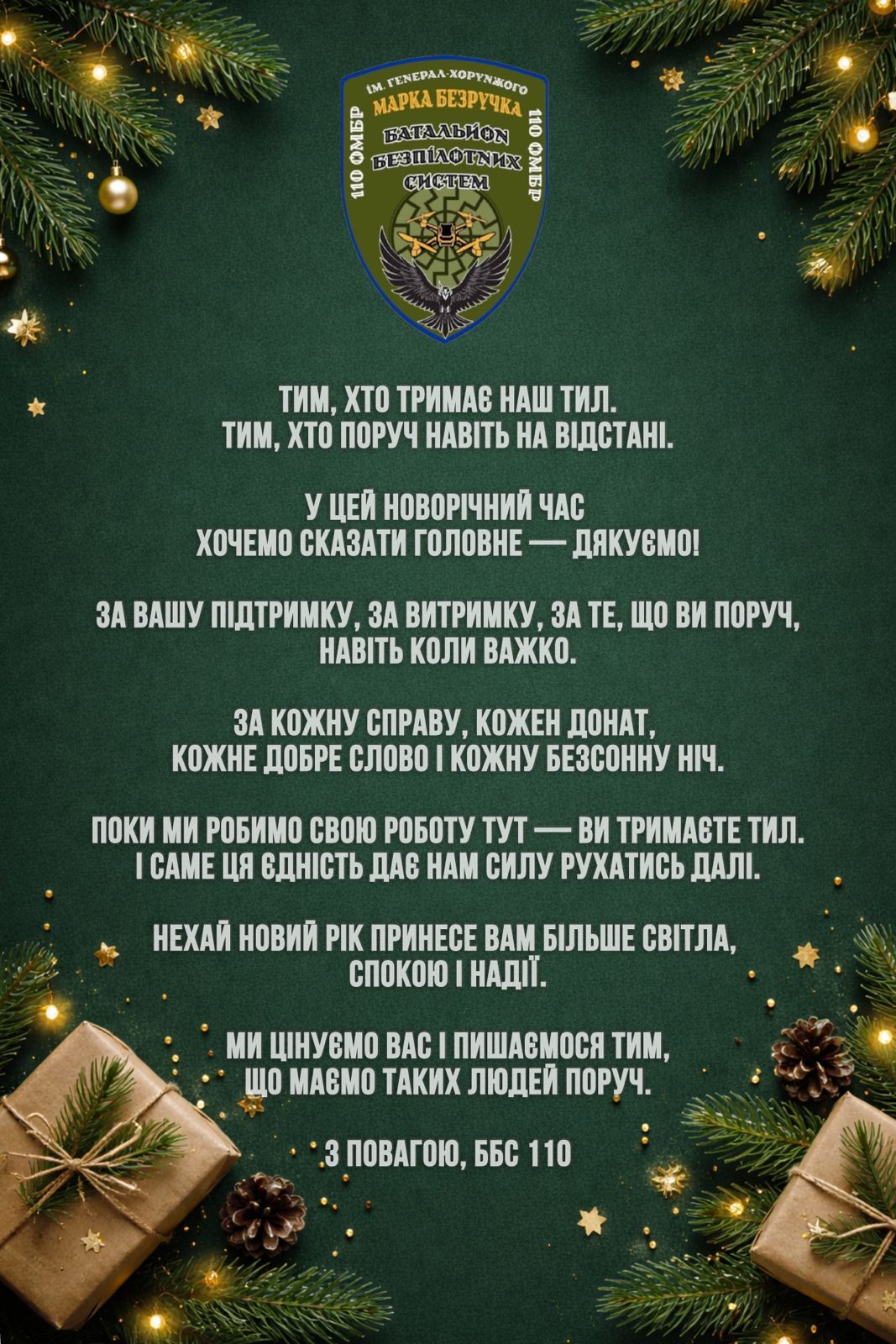 А найкращим подарунком та ознакою того що минулий рік був прожитий не дарма, який прилинув до нас з передової, для всіх нас буде подяка від одного з підрозділів ЗСУ, яким активно допомагає наша громада.