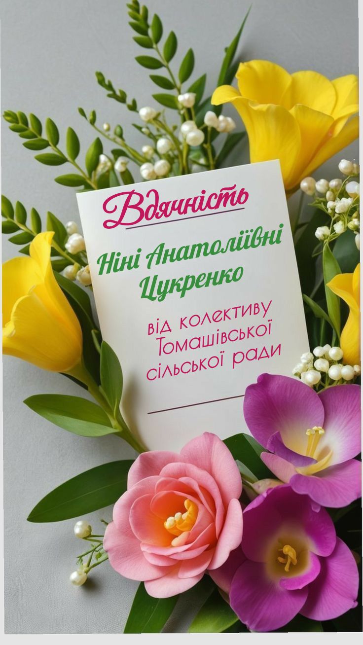 💐Виконавчий комітет Томашівської сільської ради висловлює подяку Ніні Анатоліївні за сумлінну багаторічну працю, відповідальність і постійну турботу про жителів старостинського округу, за активну життєву позицію, наполегливість і відданість справі.