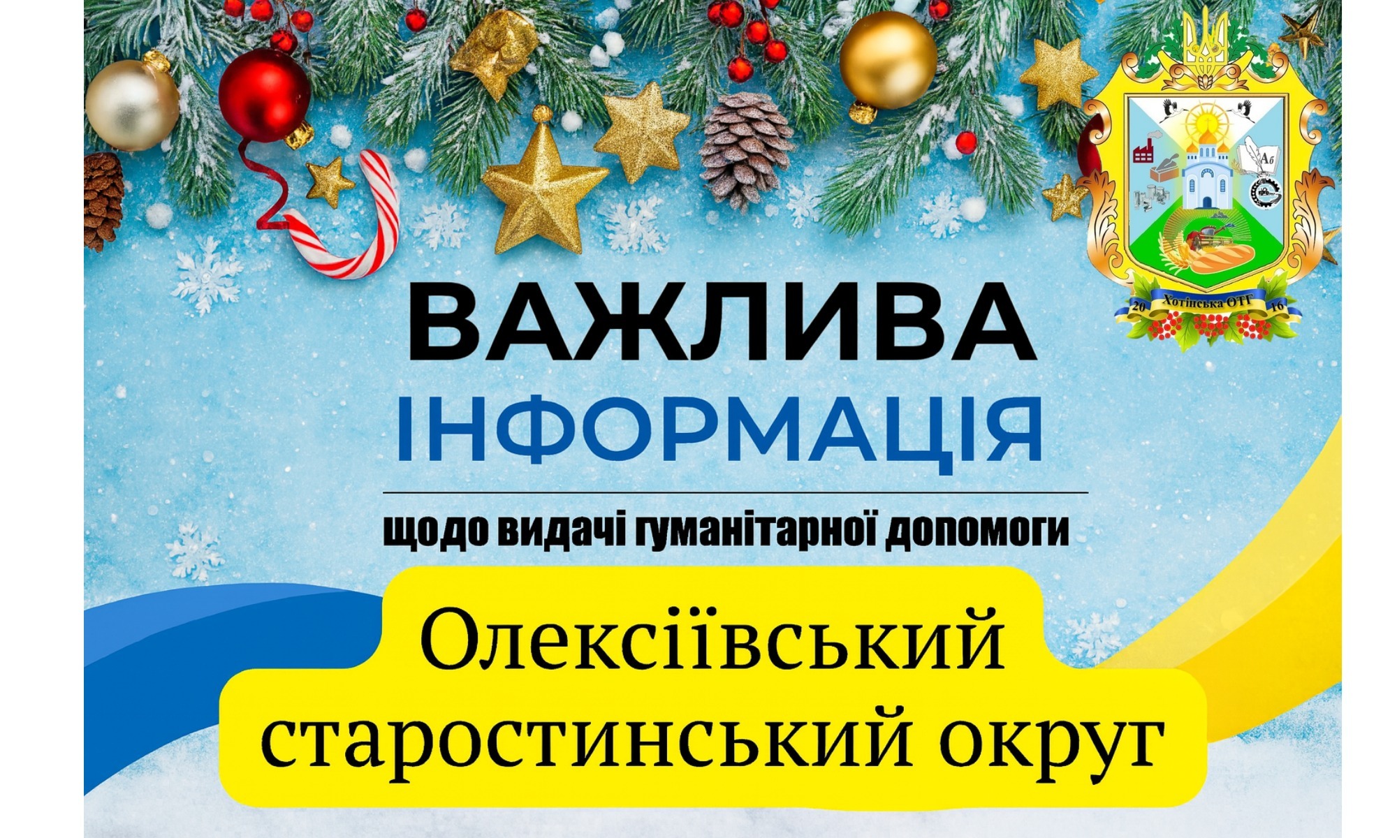 Хотінська селищна територіальна громада повідомляє, що 20 січня 2026 року з 9:00 до 12:00 відбудеться видача гуманітарної допомоги для мешканців округу, які внаслідок воєнних дій були евакуйовані за межі громади.