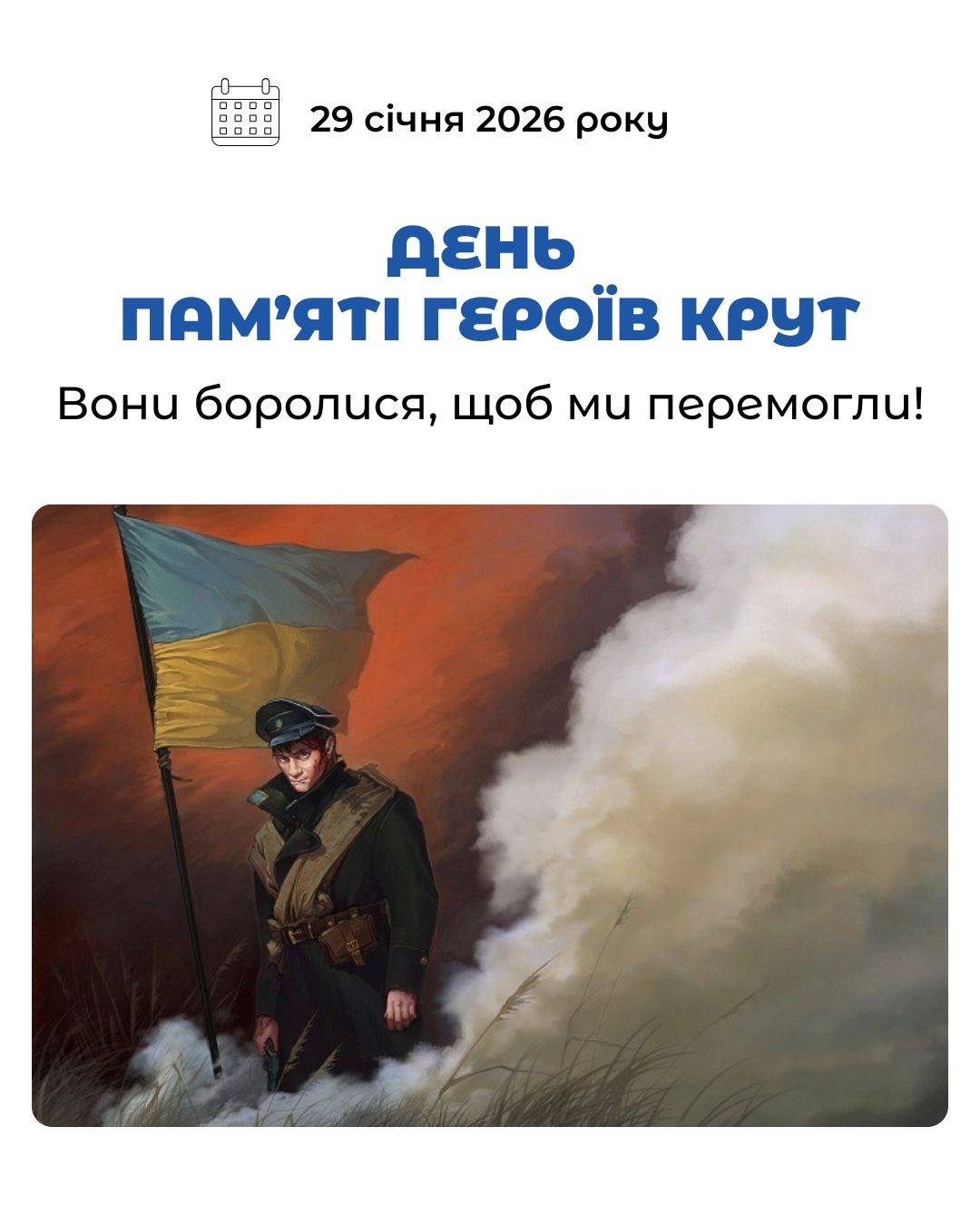 Сьогодні ми згадуємо одну з найгероїчніших сторінок історії нашої держави — День пам’яті Героїв Крут.
