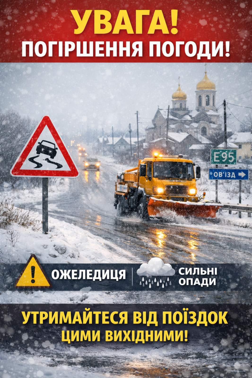 Просимо наших жителів поставитися до цієї ситуації максимально відповідально. За можливості залишайтеся завтра вдома, уникайте поїздок та будьте особливо уважними, якщо вихід або виїзд є необхідними.
