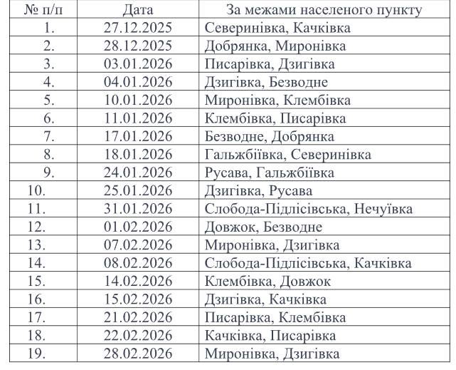 Відповідно до графіку наданого Ямпільською РО УТМР заходи будуть проводитись за межами зазначених населених пунктів.
