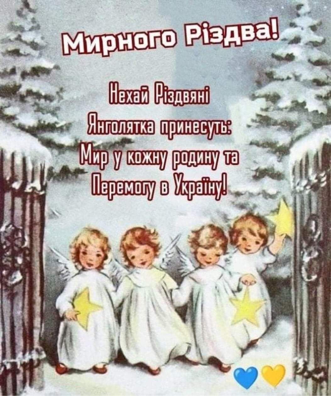 Нехай світло Різдвяної зірки принесе у ваші домівки затишок, надію та віру в краще майбутнє, а прийдешній рік стане роком миру, злагоди , нових досягнень.