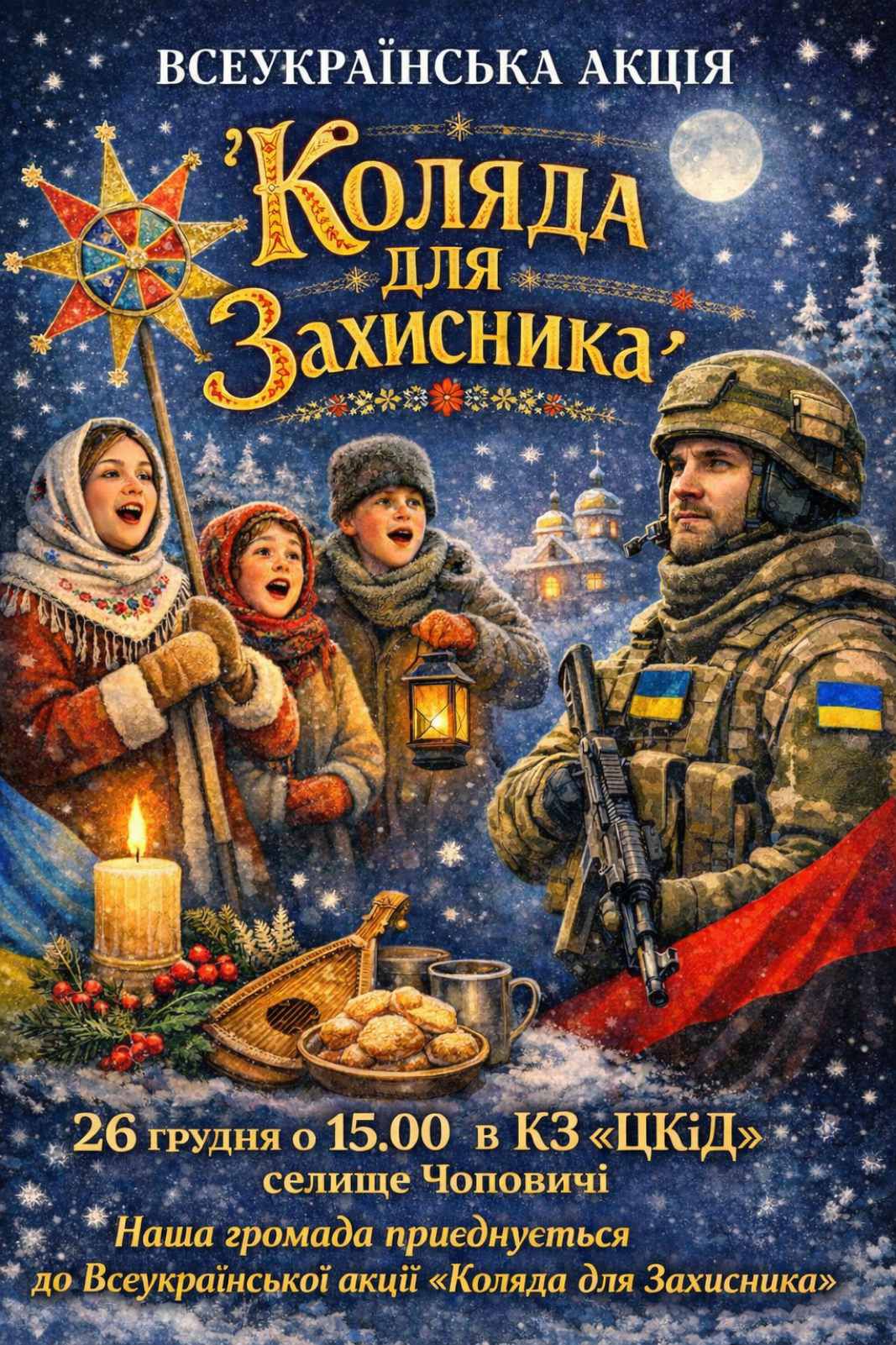Захід відбудеться 26 грудня о 15.00 в приміщенні Чоповицького будинку культури.