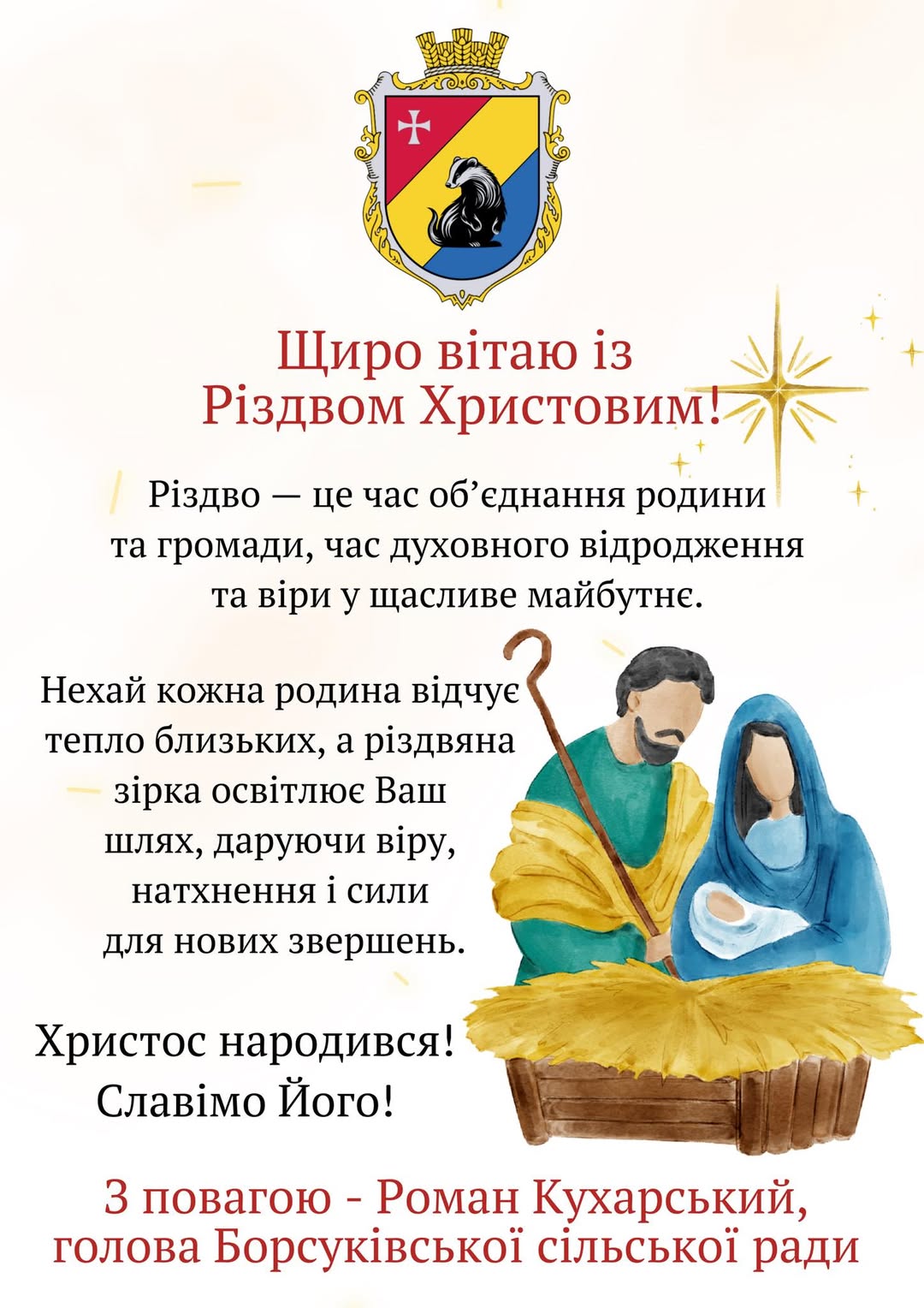 Шановні мешканці Борсуківської громади! Щиро вітаю вас зі світлим святом Різдва…