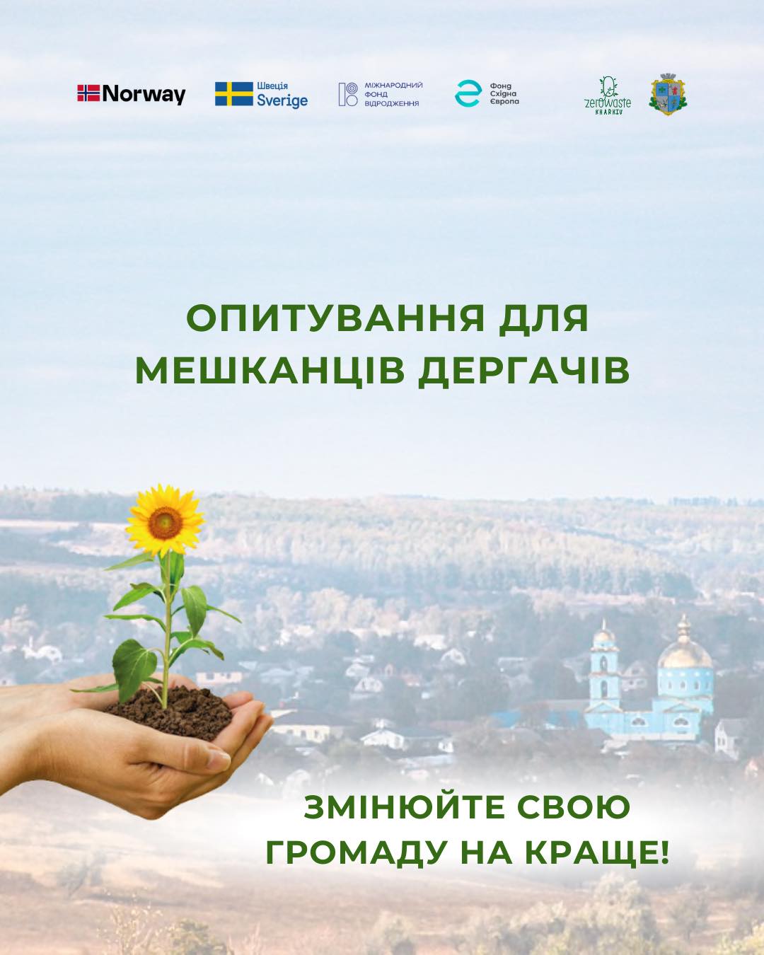 ℹ️ Проєкт впроваджується ГО «Нуль відходів Харків» у партнерстві з Дергачівською міською радою, КП «Дергачіекоресурс» та активною участю мешканців громади в межах програми «Імпульс», яку реалізовує Міжнародний фонд «Відродження» разом із Фондом Східна Європа за підтримки Норвегії (Norad) та Швеції (Sida).