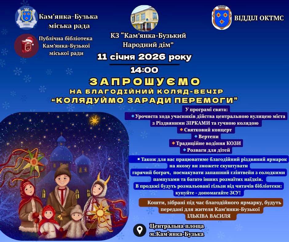 Щиро запрошуємо долучитися до благодійного коляд-вечора «КОЛЯДУЙМО ЗАРАДИ ПЕРЕМОГИ».