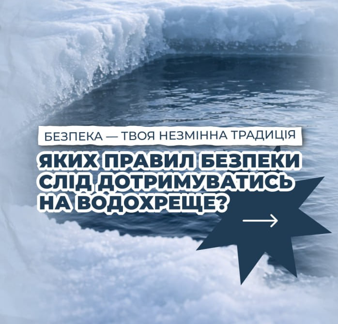 Напередодні свята Водохреща закликаємо вас бути уважними та відповідальними під час перебування поблизу водойм і участі у традиційних зимових купаннях.