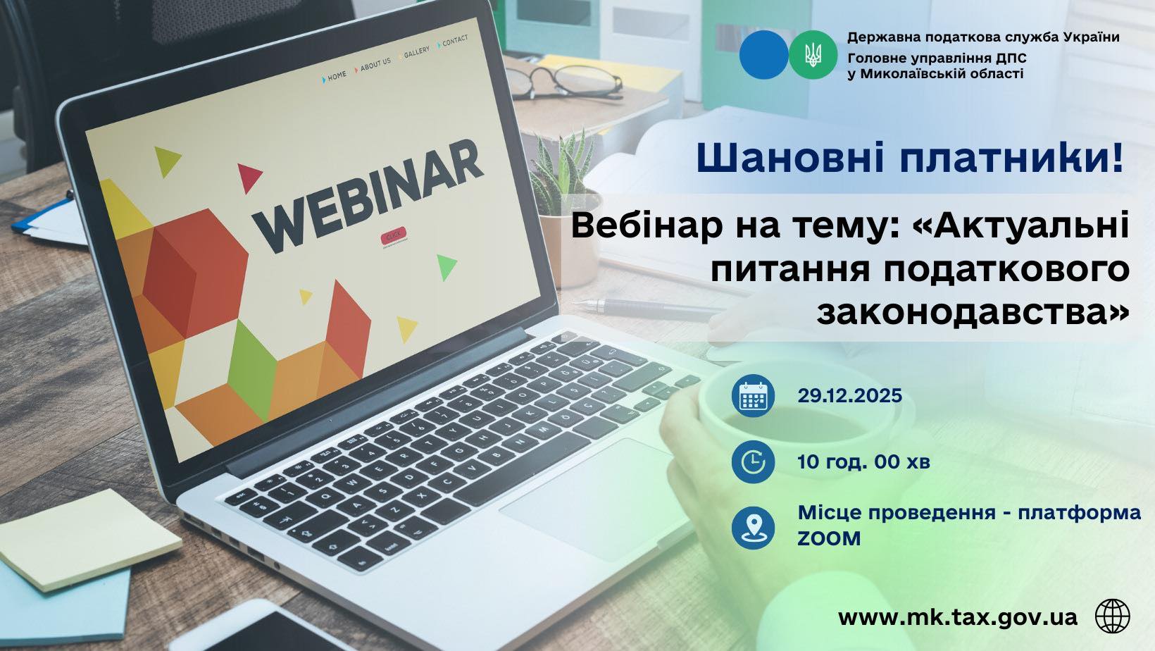 проведення вебінару на тему: «Актуальні питання податкового