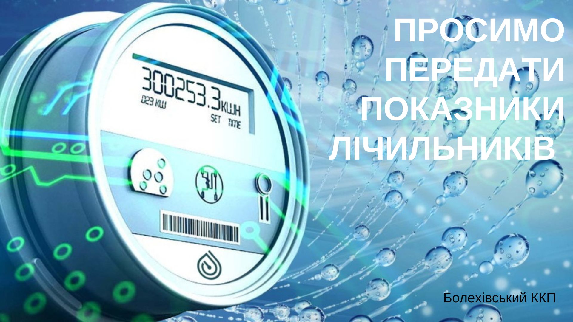 Адміністрація Болехівського ККП нагадує про обов’язкове подання показників лічильників при сплаті за послуги водопостачання.💧
