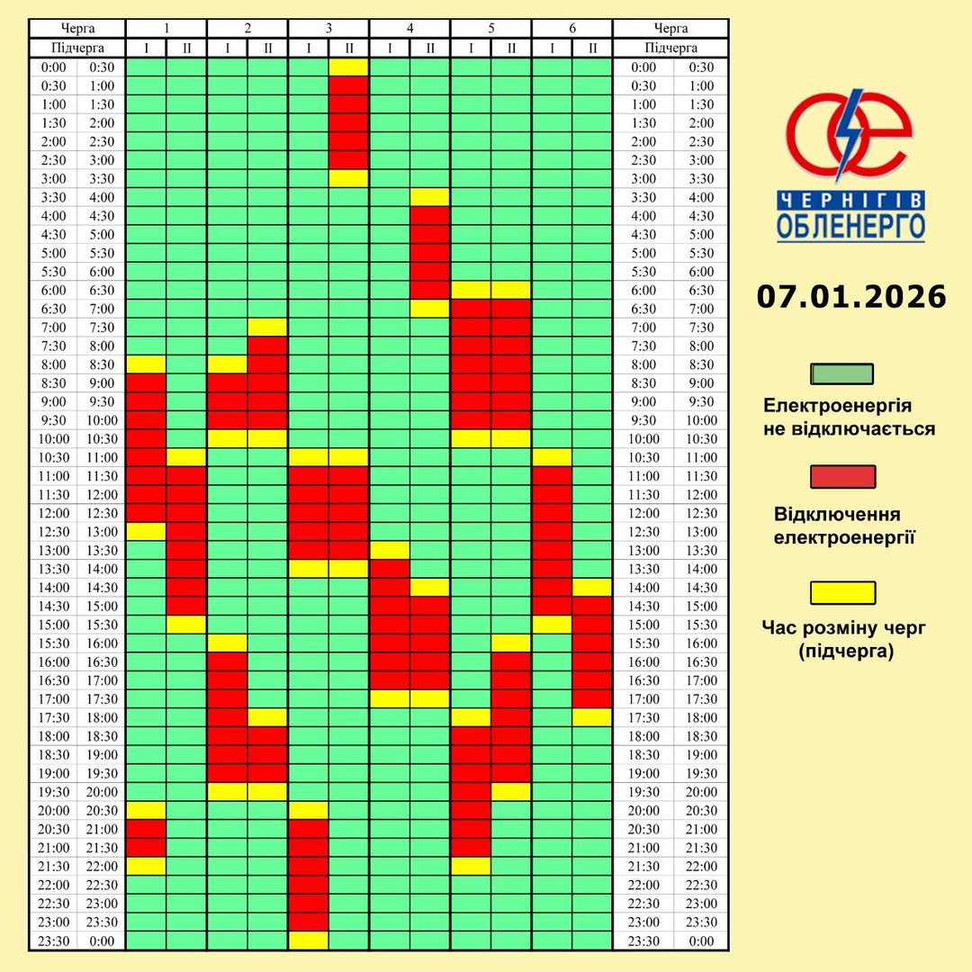 Графіки відключень щоденно розміщуються на телеграм каналі Чернігівобленерго: