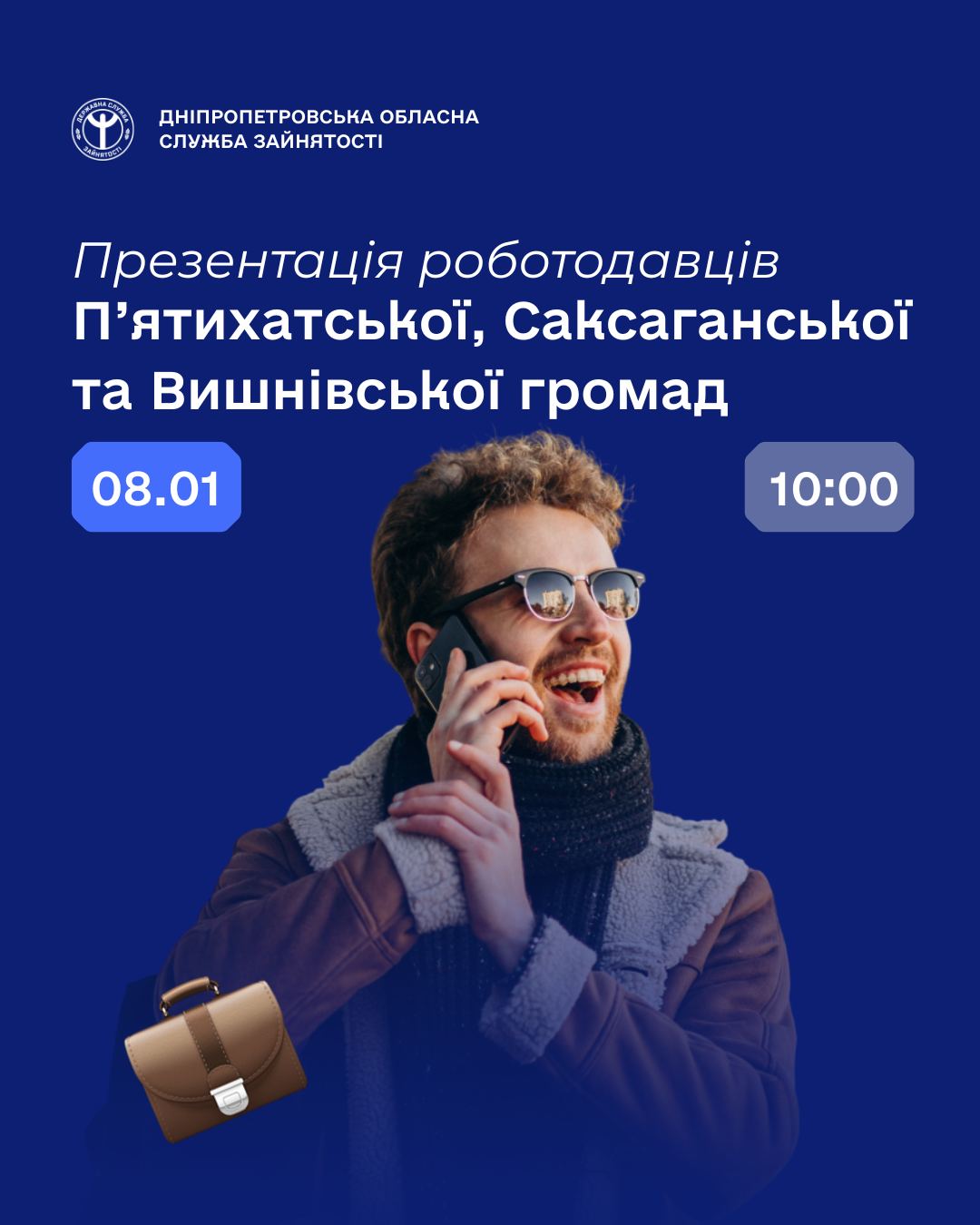 📢 08 січня 2026 року у П’ятихатському відділі Кам’янська філія Дніпропетровського ОЦЗ відбудеться презентація роботодавців та вакансій П’ятихатської, Саксаганської та Вишнівської громад.