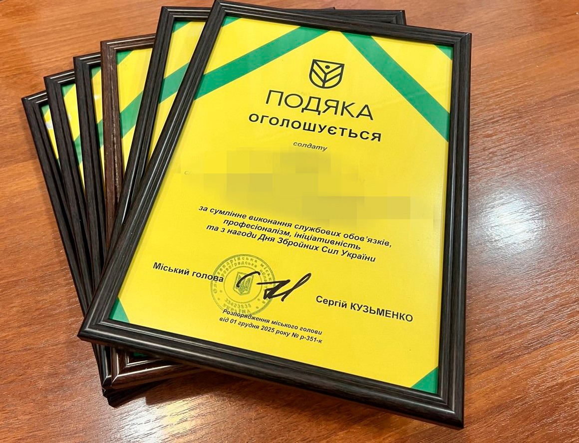 Шістьом військовим вручили подяки міського голови до Дня Збройних Сил України.