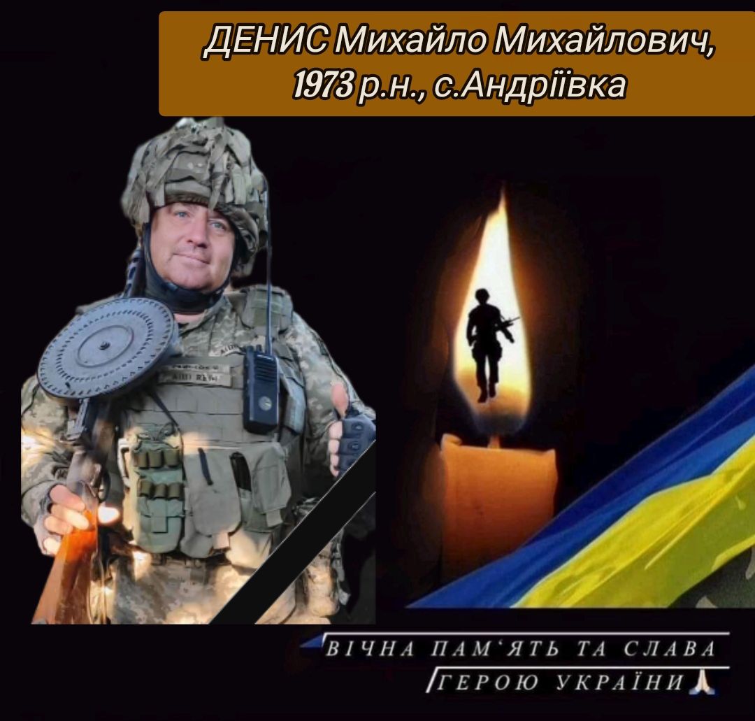 ▶️Знову сумна звістка сколихнула нашу громаду. 2 січня 2026 року помер військовослужбовець Збройних Сил України, головний сержант військової частини ДЕНИС Михайло Михайлович, 1973 року народження, мешканець села Андріївка.