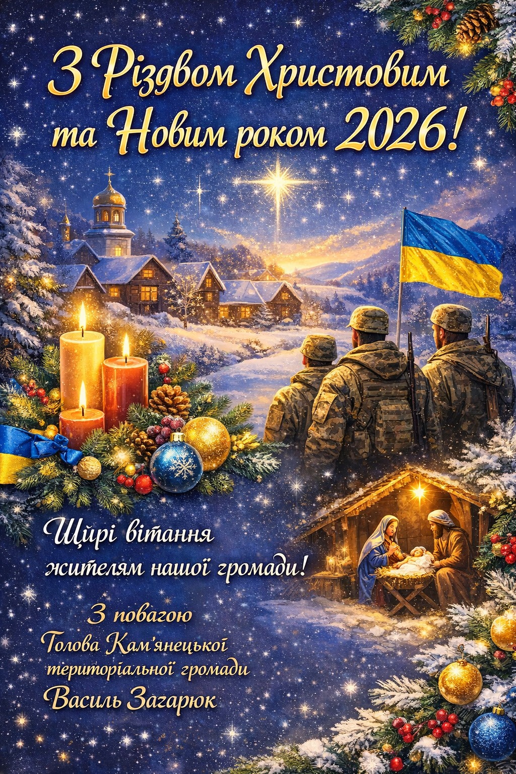 Від щирого серця вітаю кожного з вас з Різдвом Христовим та Новим роком 2026. Нехай ці світлі свята зігріють ваші домівки теплом, наповнять серця спокоєм, вірою та надією, а різдвяна зірка осяє шлях до добра, злагоди й миру.
