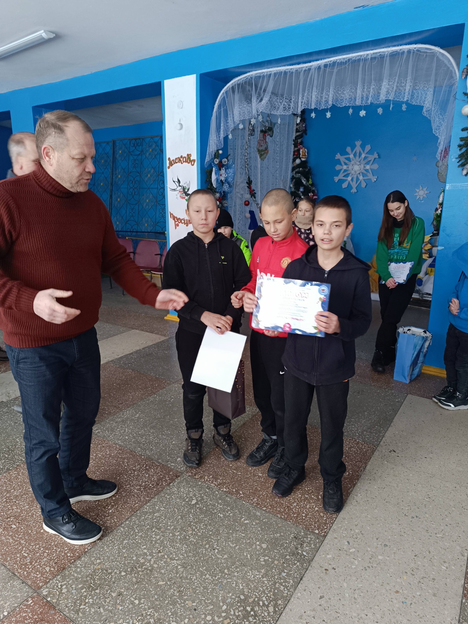 Щиро вітаємо переможців новорічно- різдвяного конкурсу ,,Колядує вся громада” з зайнятими призовими місцями. Дипломи та безліч цікавих подарунків отримали діти від голови Великосеверинівської сільської ради Левченко Сергія Володимировича, заступника голови Горкава Інна Валеріївна, начальника відділу Роман Пілюгін та старости села Перова Івана Олександровича. Щиро дякуємо Відділу освіти та культури за організацію цікавого та змістовного конкурсу, сьогодні було справжнє свято для наших діток!