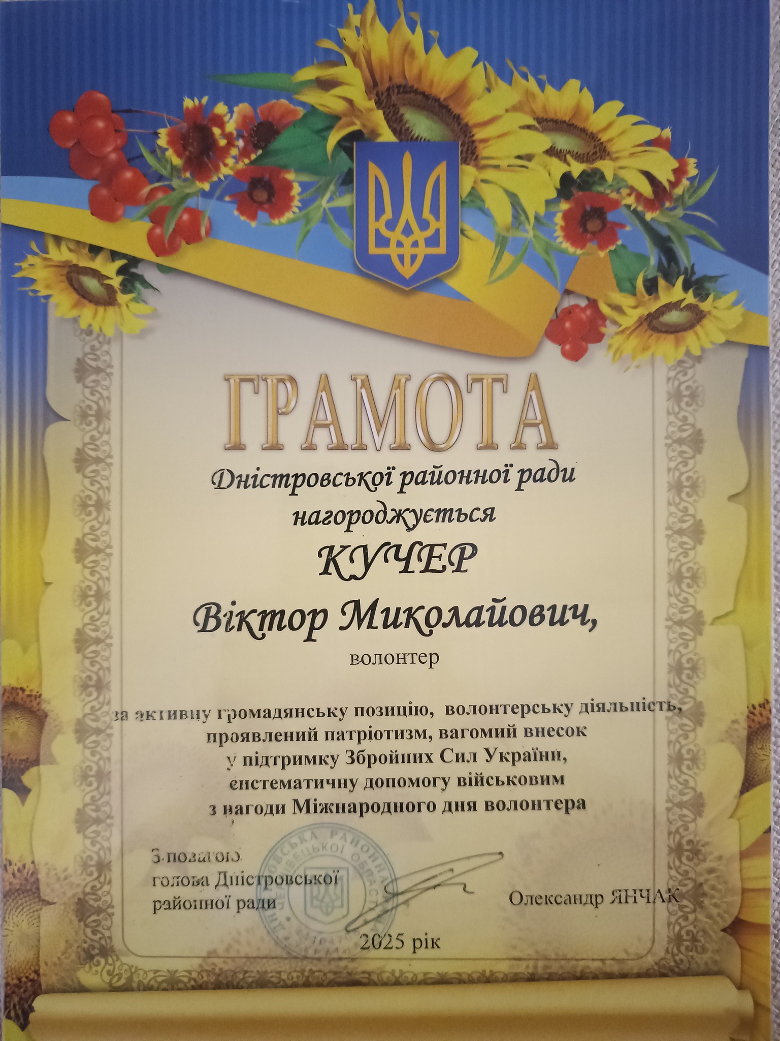Щиро дякую Дністровська Районна Рада Дністровська Районна Рада Олександр Янчак Олександр Корнівський Галина Слухінська Рукшинська територіальна громада Олег Горбатюк @Дністровський РТЦК та СП за таку високу оцінку моєї громадянської позиції!