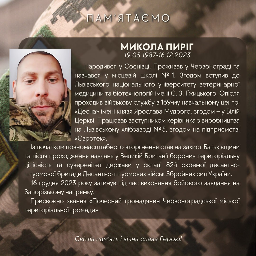 Сьогодні минає два роки з дня загибелі Захисника України Миколи Пирога. У цю скорботну мить схиляємо голову перед Героєм, який віддав найцінніше – власне життя за незалежність України та за кожного з нас.
