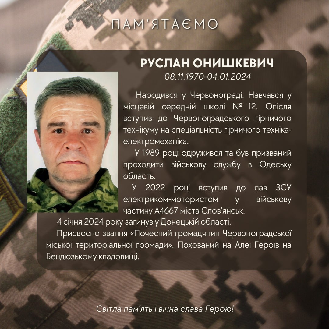 Сьогодні минає два роки з дня загибелі Захисника України Руслана Онишкевича. У цю скорботну мить схиляємо голову перед Героєм, який віддав найцінніше – власне життя за незалежність України та за кожного з нас.
