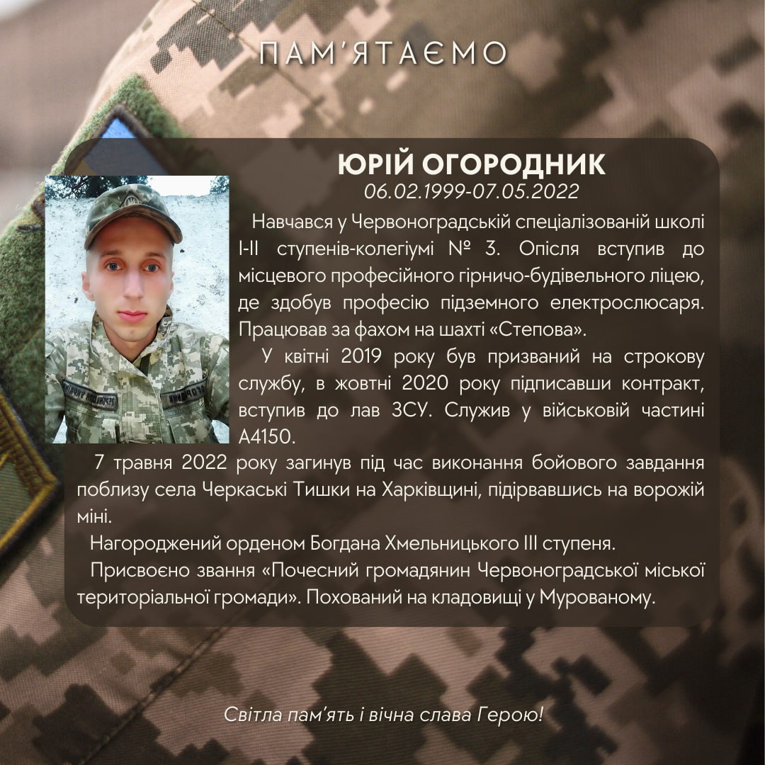 Сьогодні, в цю скорботну мить, схиляємо голову перед Героєм Юрієм Огородником.