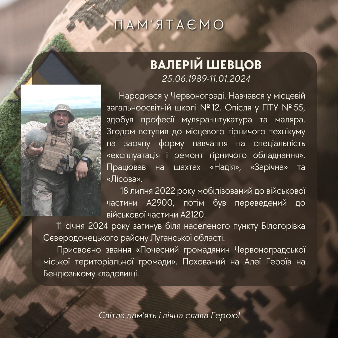 Сьогодні минає два роки з дня загибелі Захисника України Валерія Шевцова. У цю скорботну мить схиляємо голову перед Героєм, який віддав найцінніше – власне життя за незалежність України та за кожного з нас.