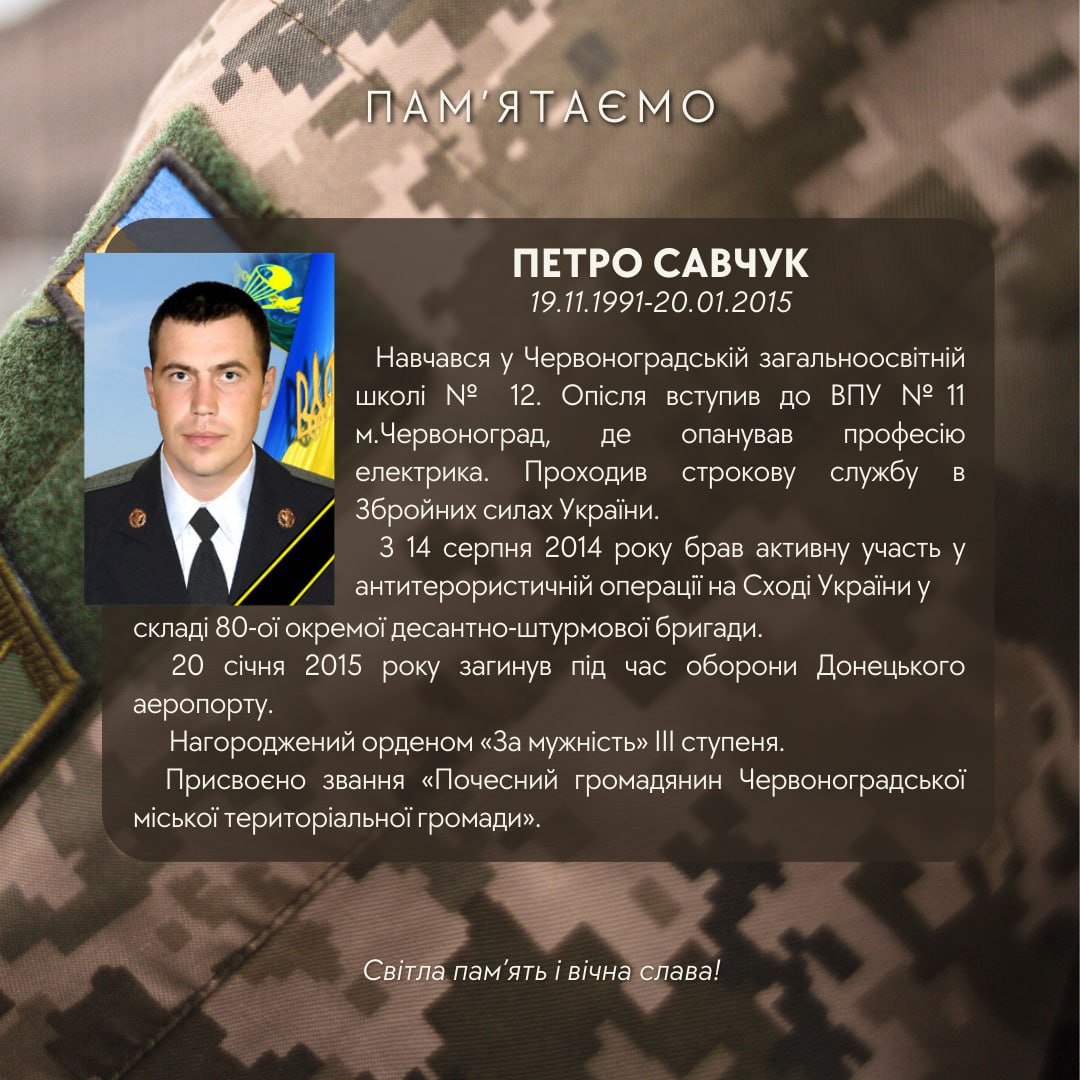 Сьогодні минає одинадцять років з дня загибелі Захисника України Петра Савчука. У цю скорботну мить схиляємо голову перед Героєм, який віддав найцінніше – власне життя за незалежність України та за кожного з нас.