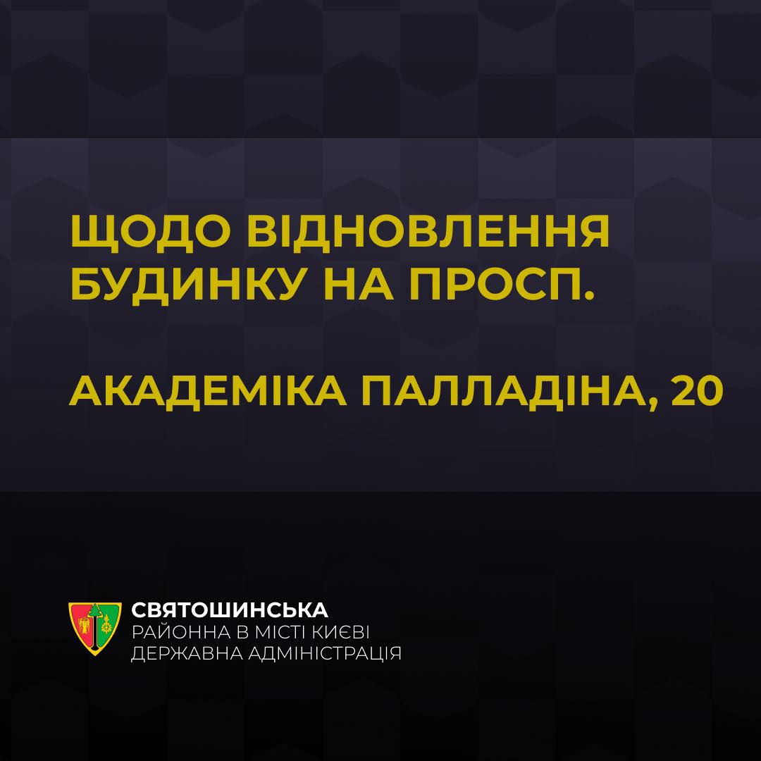 Щодо ситуації з пошкодженим будинком по просп. Академіка Палладіна, 20. У соціа…