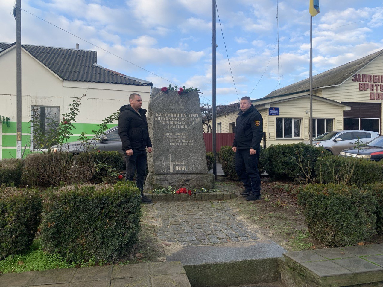 З нагоди Дня вшанування учасників ліквідації наслідків Чорнобильської катастрофи, сьогодні за участю секретаря селищної ради Наталії Цехмістренко, заступника селищного голови Ірини Міненко, керуючої справами виконавчого комітету Олени Поліщук, голови громадської організації “Організація ветеранів України Катеринопільської територіальної громади” Миколи Поліщука, працівників Калинопільської селищної ради та місцевих рятувальників, було покладено квіти до пам’ятника односельцям, чиї життя забрала страшна катастрофа.
