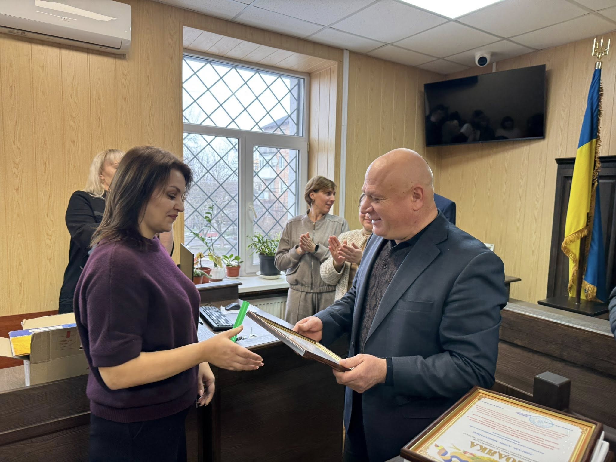 За відданість справі, професіоналізм та принциповість у служінні Закону, особистий внесок у забезпечення захисту конституційних прав і свобод громадян, високий професіоналізм та з нагоди Дня працівників суду вручено Подяки Рокитнянської селищної ради.
