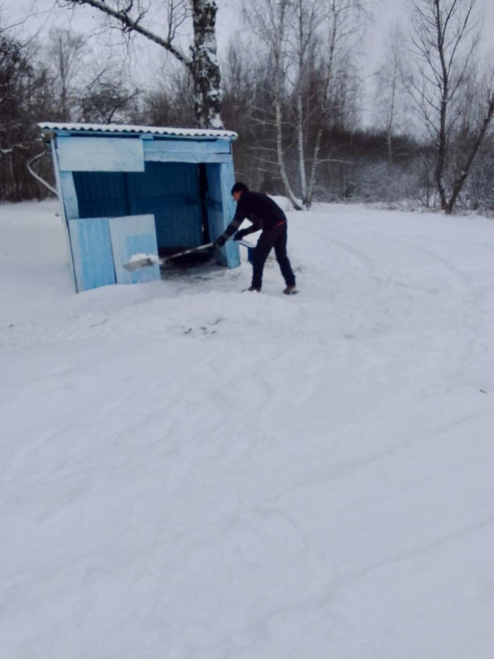 • Чищення снігу вручну території біля адмінприміщення та центру в с. Устинівка;