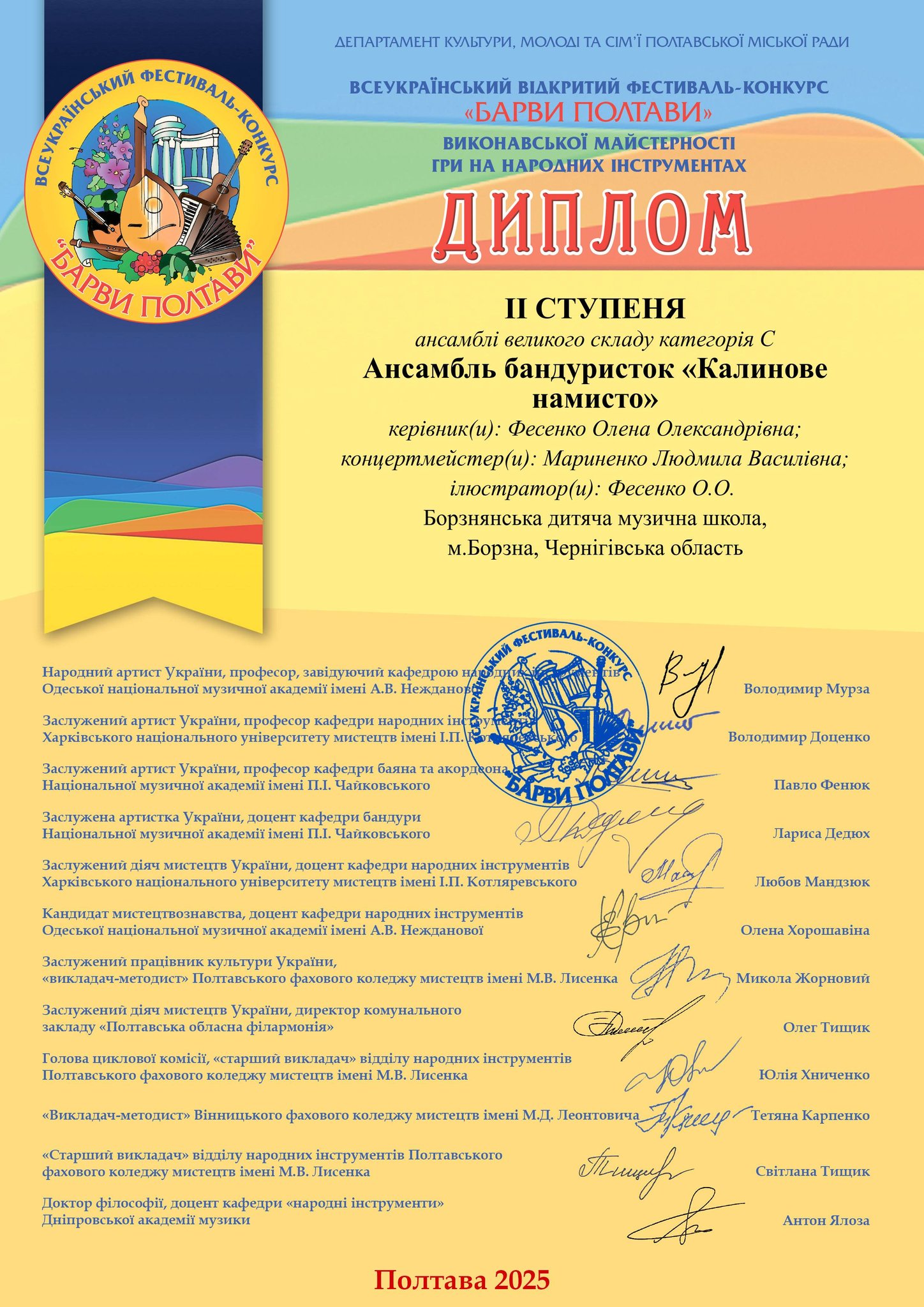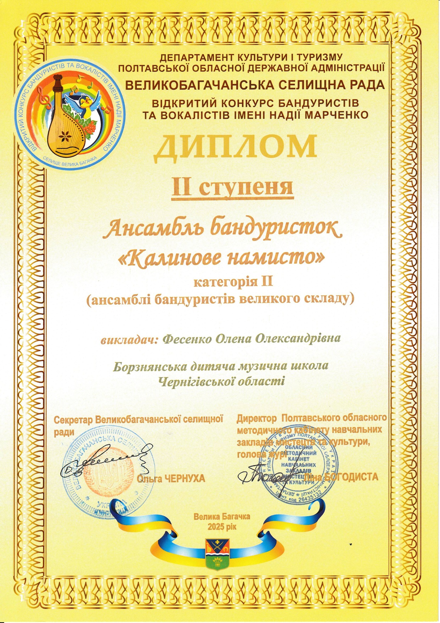 🥈 ІІ місце – ансамбль бандуристок «Калинове намисто» (старша група).