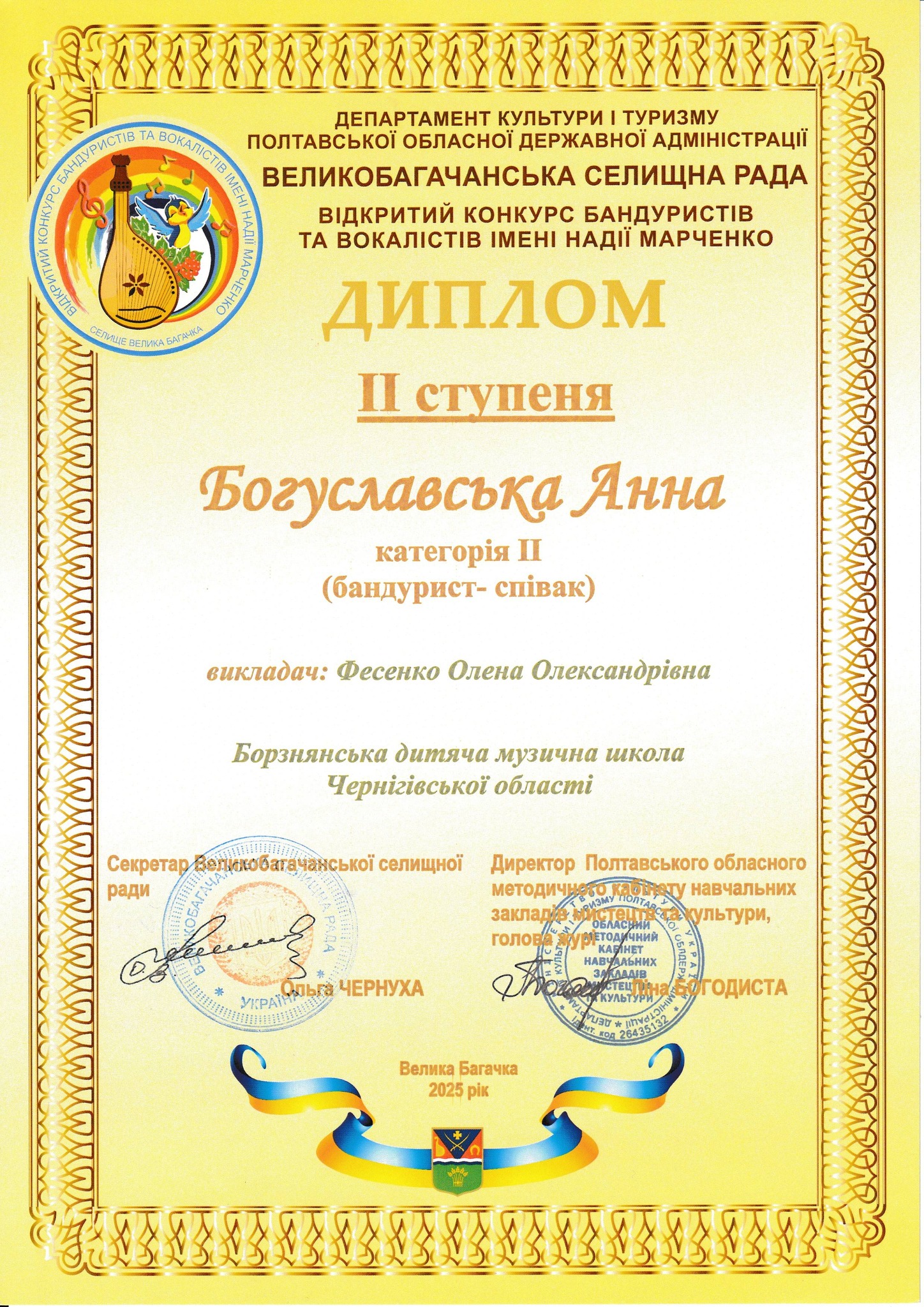 🥈 ІІ місце – Анна Богуславська (номінація «Бандурист-вокаліст»);