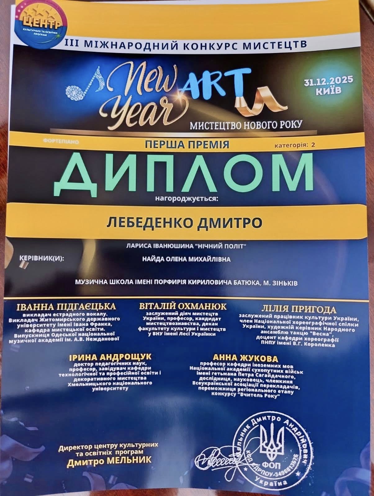 🏆 Із заслуженими престижними нагородами вітаємо талановитих учнів Зіньківської музичної школи: Діану Іванчук та Дмитра Лебеденка (фортепіано, викладач — Олена Найда).