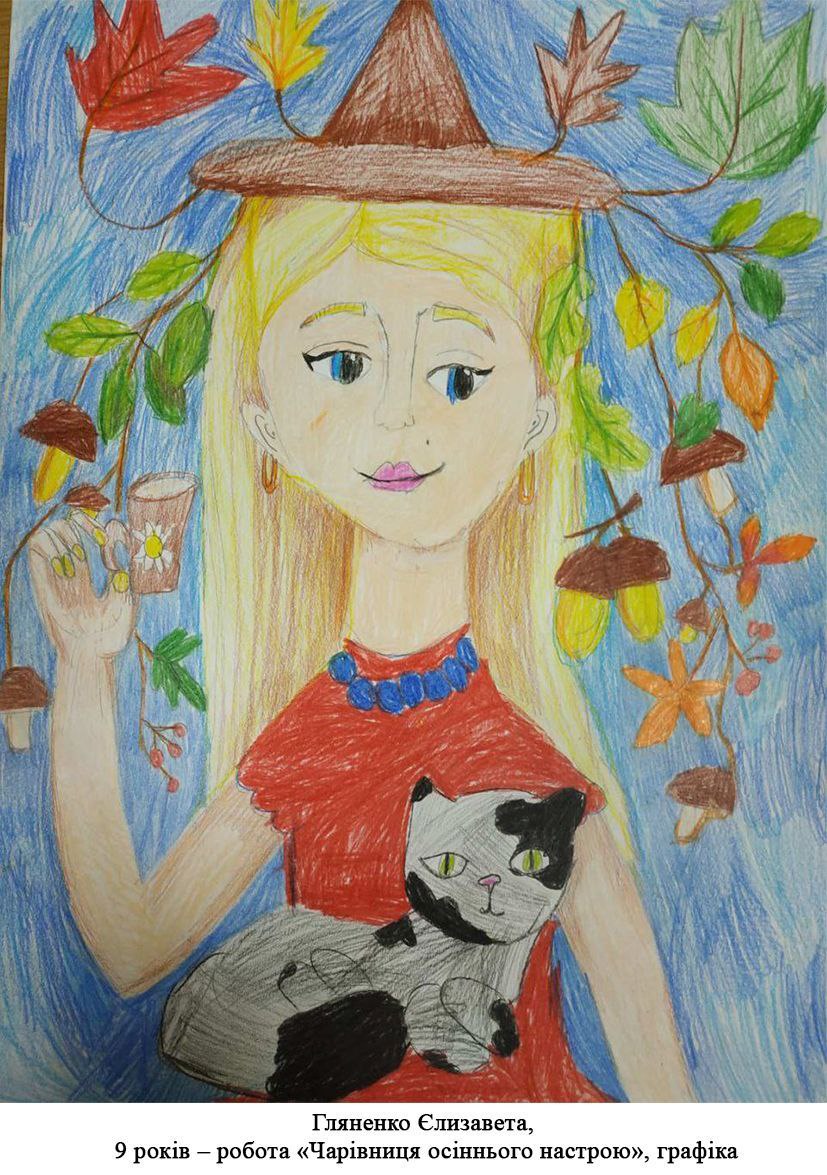 🎨 Гляненко Єлизавета, 9 років – робота «Чарівниця осіннього настрою», графіка